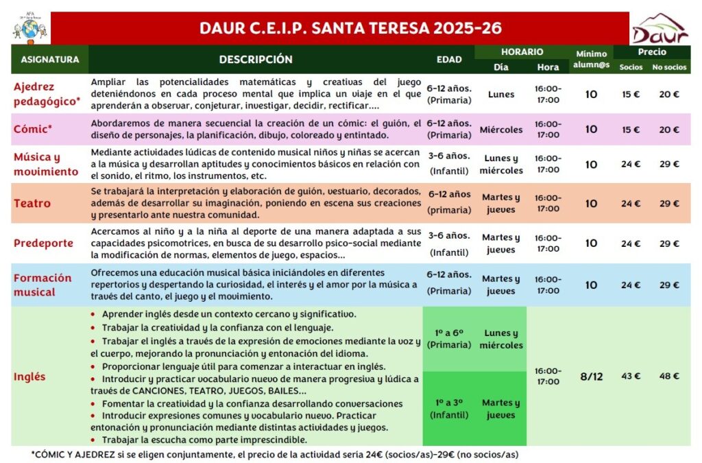 Actividades disponibles 2025-26 (Clik aquí para inscribirte) APERTURA 12 DE SEPTIEMBRE