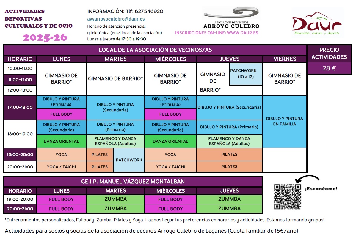 Selecciona correctamente los días y horario de la actividad en la que te vayas a registrar.